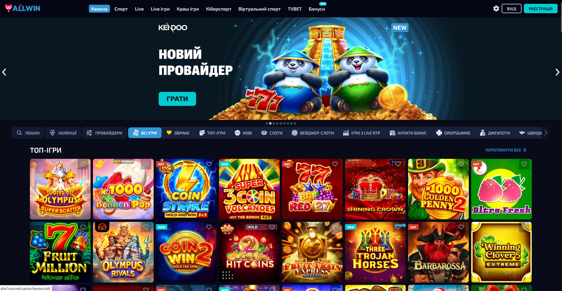 | Назва платформи | AllwinUA Casino (Allwin, Аллвін, БК Олвін) |